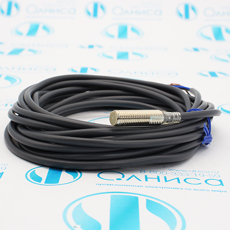 E2E-X1R5F1 5M Датчик приближения индуктивный Omron, маслостойкий, нержавеющая сталь, размер M8, длина 37 мм, заподлицо, 1,5 мм, DC, 3-проводной, PNP, NO, кабель 5 м.