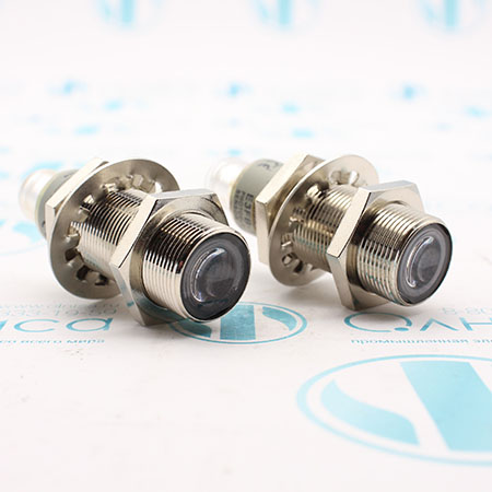 E3FB-TP21 Датчик фотоэлектрический Omron M18, металл, красный свет, световой барьер, 20м, PNP, на свет/темноту, разъём M12, инверсная логика.