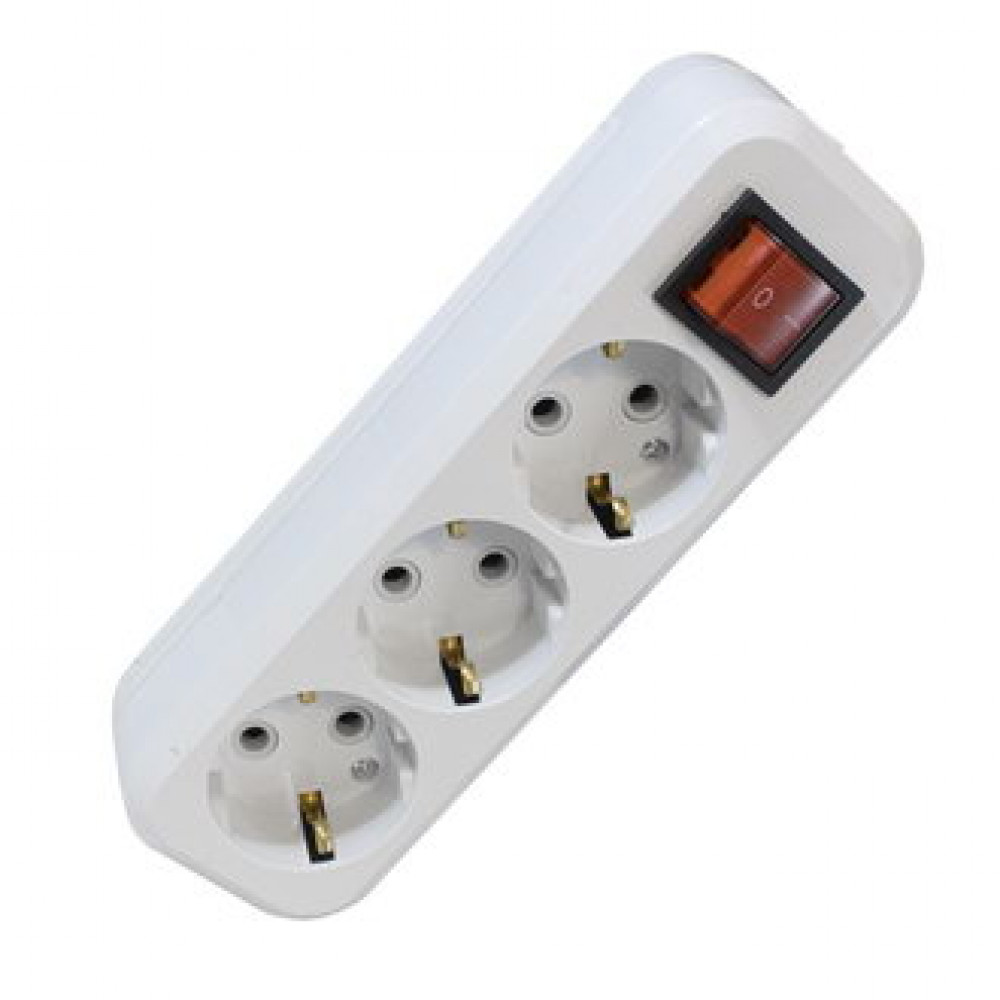 Колодка электрическая для удлинителя с выключателем RUICHI КД-003-3, 3 розетки, IP20, 220 В, 10 А, 50 Гц, 3500 Вт, с заземлением, пластиковая, белая