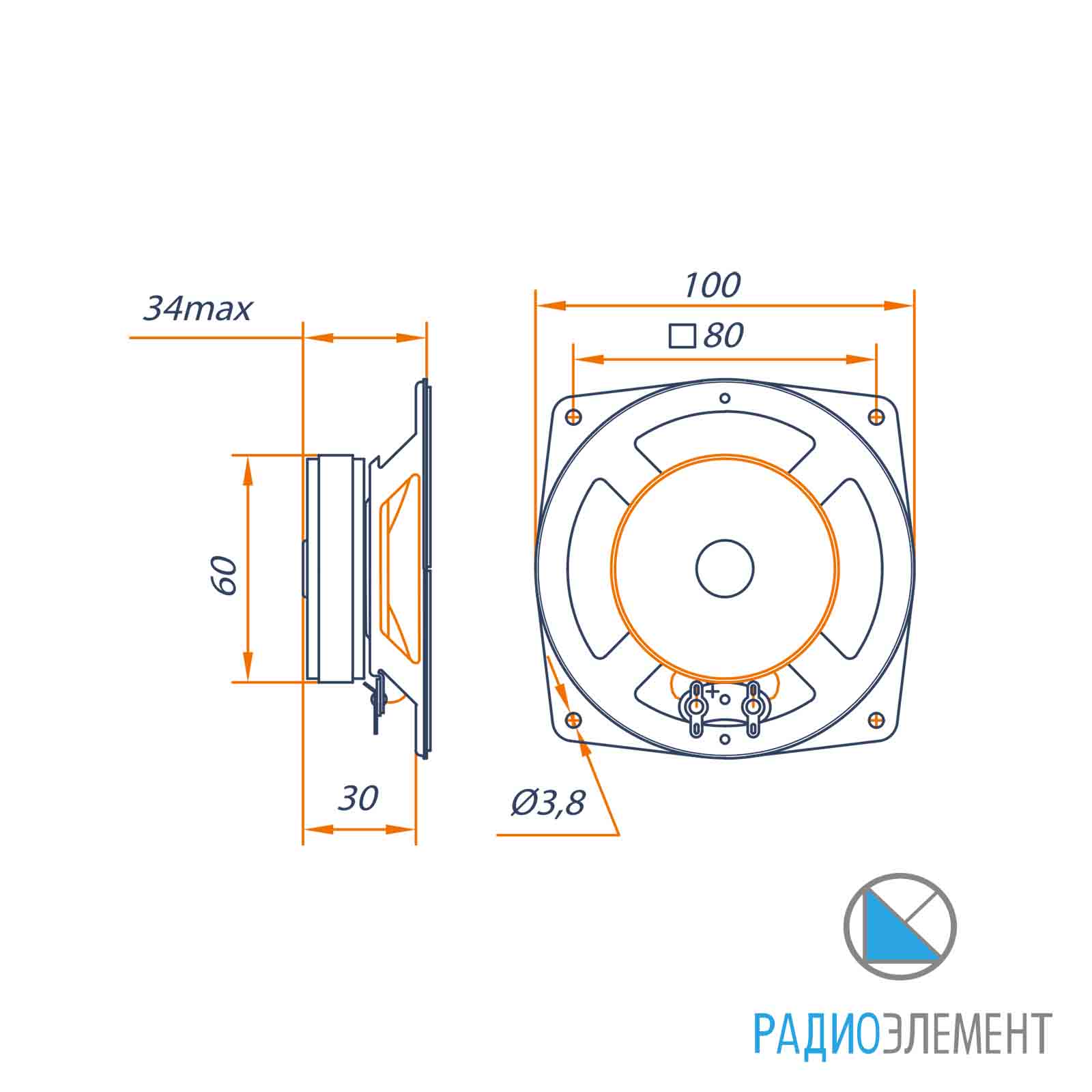 Габаритные размеры 100x100x34 мм
