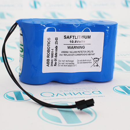 3HAC16831-1 Батарейка ABB, Напряжение: 10,8 V Емкость: 17000 mAh Размер: 34х99х63 мм Состав: литий-тионил хлорид