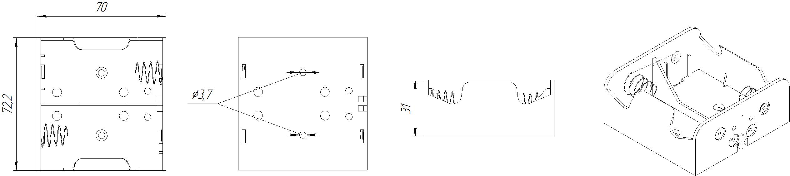Батарейный отсек RUICHI BH121 D 2x1 (BH610), открытый