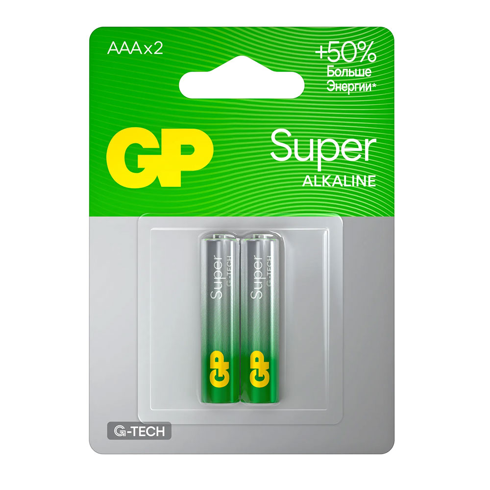 GP 24AA21-2CRSBC2, Батарейки ААA 2 шт. на блистере Super Alkaline G-Tech