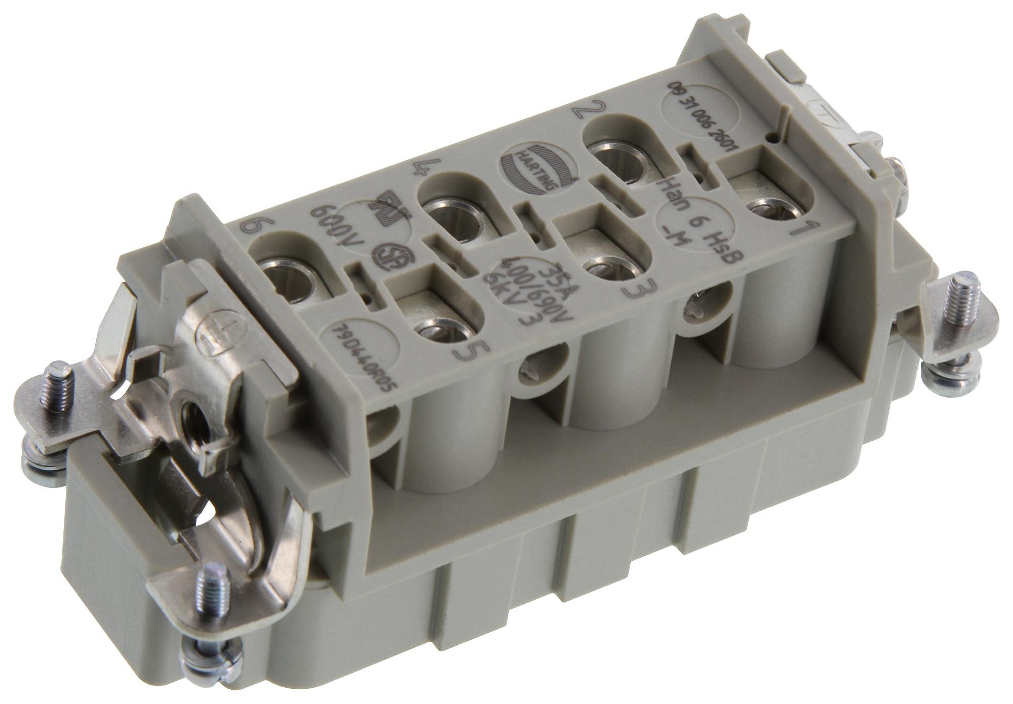 Разъем: прямоугольный, "папа", Han HsB, PIN: 6, 6+PE, размер 16В
