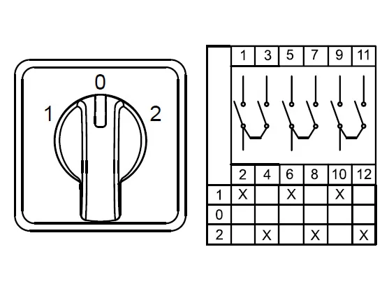 • Краткое наименование: CS020053S; Трехпозиционные Переключатели (1-0-2) ; 3 FAZ 20 A 60°