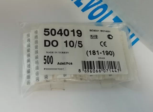 Клей-маркер Klemsan 504019 DO 10-5 — идеальное решение для маркировки горизонтальной поверхности с номерами от 181 до 190. В упаковке содержится 500 штук, что обеспечивает достаточное количество для длительного использования.