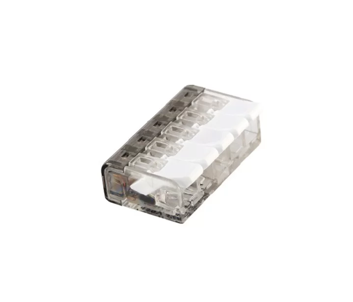 Клемма монтажная Klemsan 425450, модель UC05, представляет собой высококачественное электромонтажное изделие, предназначенное для соединения и фиксации проводов в электрических цепях. Эта клемма обладает пятью полюсами, что позволяет одновременно подключать несколько проводников, обеспечивая надёжное и безопасное соединение.