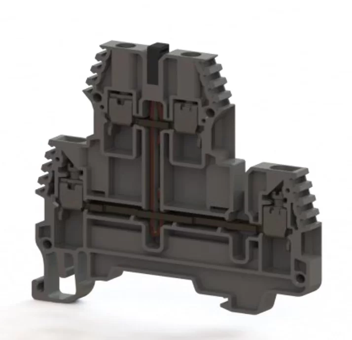 Двухъярусный клеммник с сечением провода 2,5 мм² и внутренней перемычкой обеспечивает удобство и простоту монтажа, позволяя быстро и легко организовать электрические соединения. Серый цвет клеммника гармонично впишется в любой интерьер.