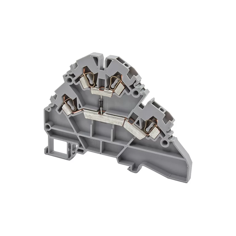 Клеммник 2-х ярусный пружинный, 2,5 мм.кв., с диодом, (серый); YBK2,5-2FD-B 316229
