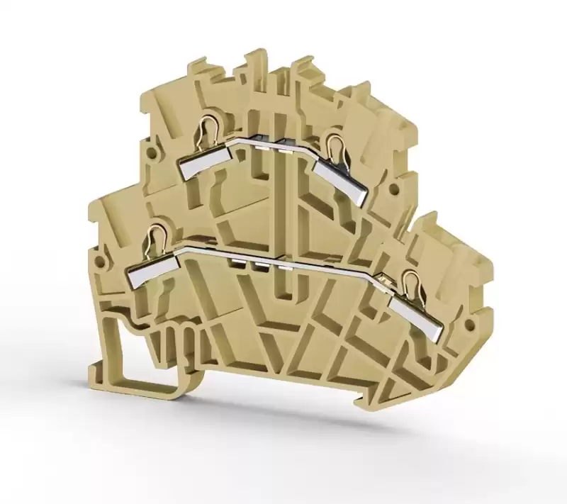 Клеммник 2-х ярусный пружинный быстрозажимной (Push in), 2,5 мм.кв. (бежевый); PYK2,5-2F 307170