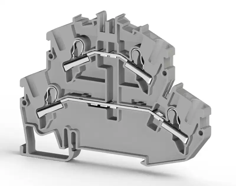 Клеммник 2-х ярусный пружинный быстрозажимной (Push in), 4 мм.кв. (серый); PYK4-2F 307579