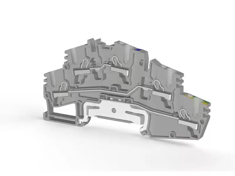 Клеммник двух ярусныйпружинный быстрозажимной (Push in), 2,5 мм.кв.; PYK 2.5_M2FT (Серый) 307709