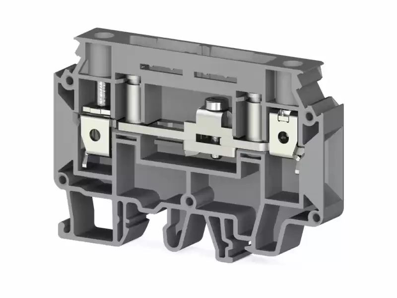 Клеммник имеет два тестовых разъёма и рассчитан на провода сечением 10 мм². Корпус выполнен в стильном сером цвете, что позволяет легко вписать его в любое электронное устройство.