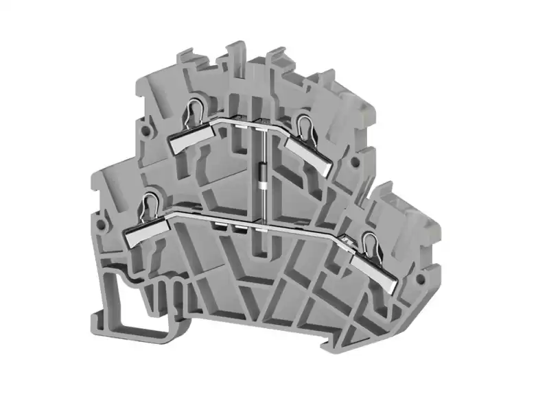 Клеммник пруж.быстрозажимной (Push in) 2-х ярусный, 2,5мм.кв., с диодом, (серый); PYK2,5-2FD A 307369