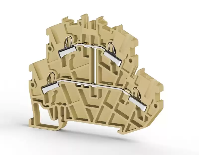 Клеммник пруж.быстрозажимной (Push in) 2-х ярусный, 2,5мм.кв., с внутр.перемычкой, (бежевый); PYK2,5-2FK 307230