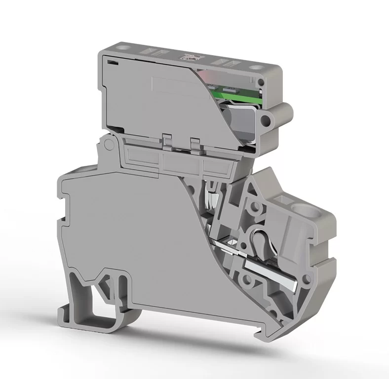 Клеммник пруж.б/зажим. (Push in) с держ.пред.(6,3х31,75) с инд. 24VDC, 4 мм.кв. (серый); PYK 4ILD 24VDC (6,3х31,75) 307329
