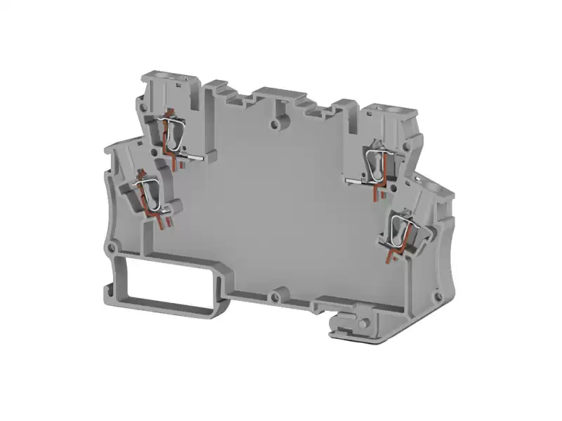 Клемма имеет два входа и два выхода, что позволяет удобно подключать различные электронные компоненты. Площадь сечения составляет 4 мм², что гарантирует стабильность и надёжность соединения. Серый цвет клеммы гармонично впишется в любую схему.