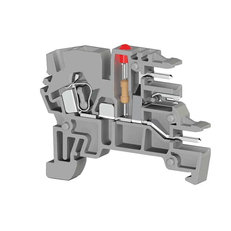 Клеммник пружинный с 2-х ряд. разъёмом, с индикацией 24 VDC, на DIN-рейку, 2,5 мм.кв., (серый); PCY 2,5EL 364069