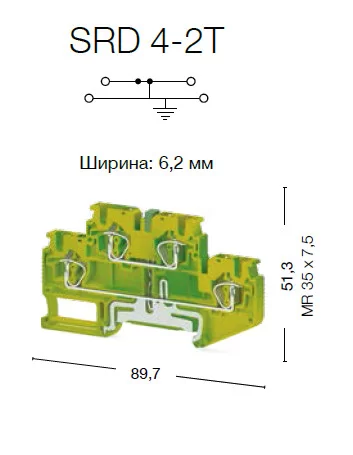 Пружинная клемма серии SRD 4-2T (Желто-Зеленый) Земля 337200