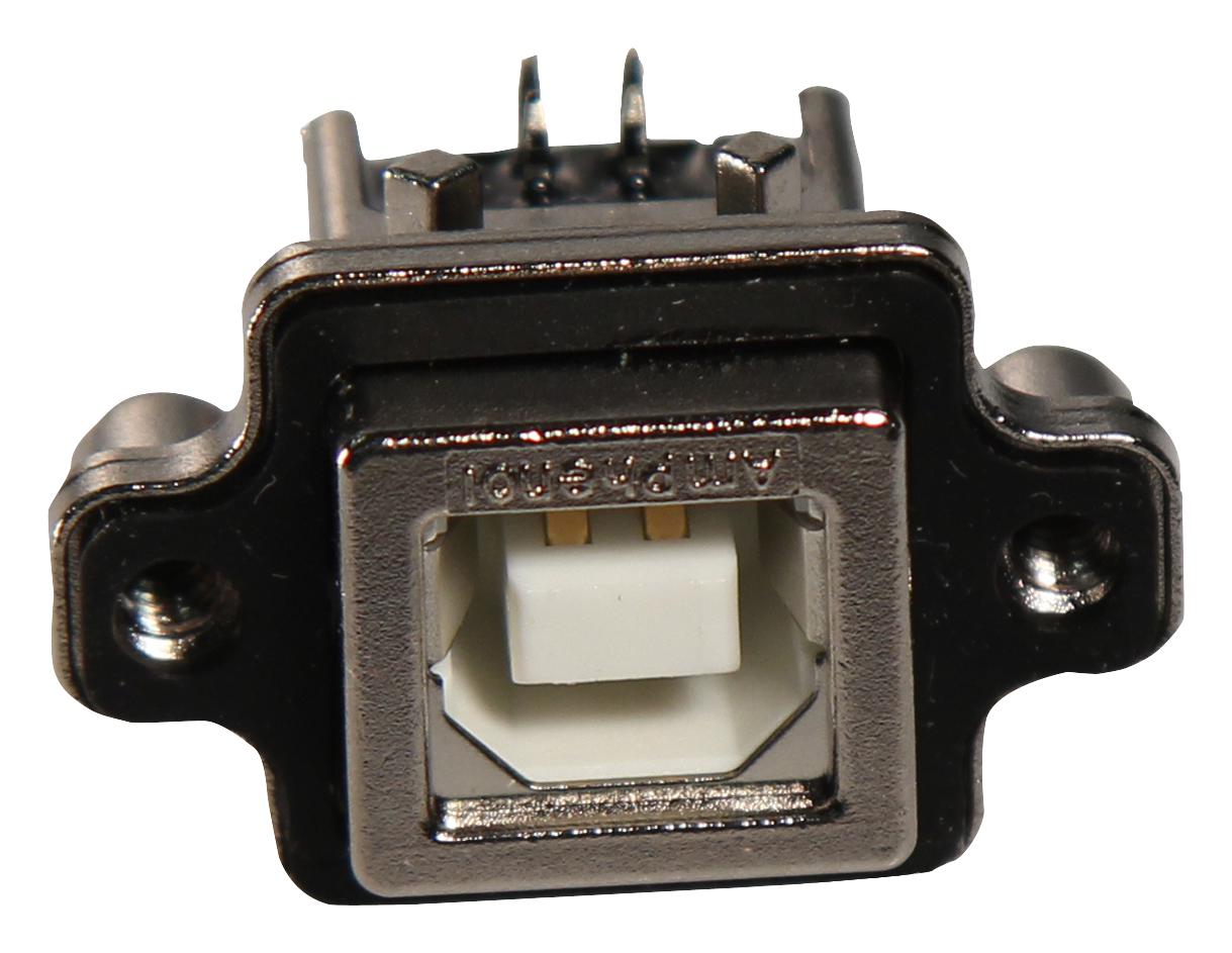 MUSBD111M1 Гнездо, USB B, MUSB, на панель, винтами, THT, угловой 90°, USB 2.0 AMPHENOL