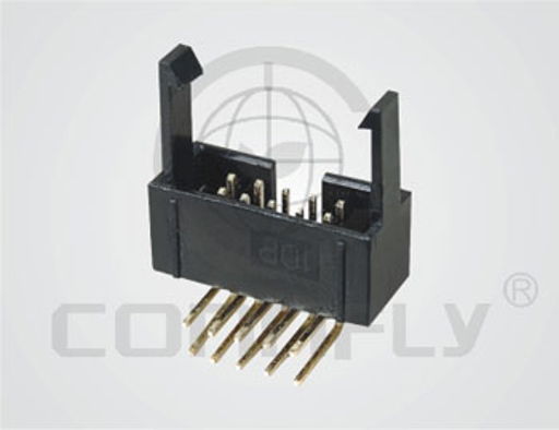 Разъем "вилка"  14 конт.(2x7) шаг 2.54 мм, с боковыми отгибн. фиксаторами, вертик. на плату (ответн. часть к IDC)