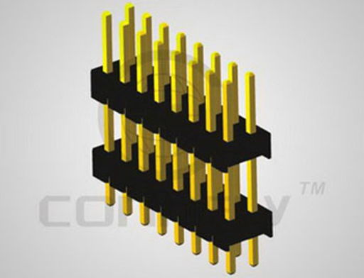 Штыри двухрядные 2x7 конт. шаг 2.54 мм, межплатные вертик. (3.0/ 6.5/ 6.0 мм), позол. (изолят. тип V1) (DS1029-04-2*7P8BVA21-B)