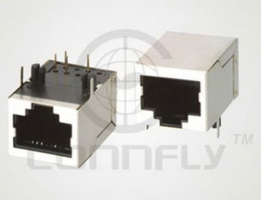 Разъем экранир. "гнездо" 8P8C RJ-45 (8 конт., позол.), прямой угол на плату, без лепестк., Lкорп. = 21.4 мм