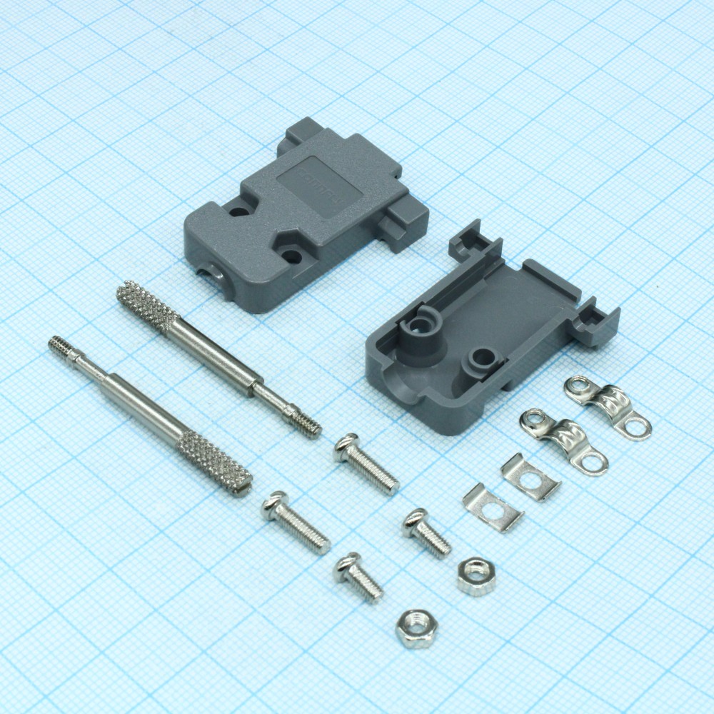 Кожух для D-SUB разьема 9 pin с удлиненными винтами, пластик, серый