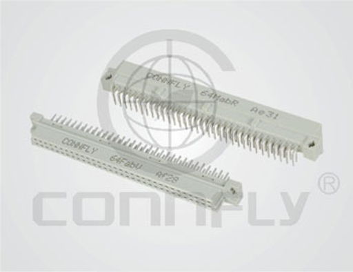 Разъем DIN-41612 64 конт. "вилка" двухрядн. 2x32 (ряды "a + b" с контактами) шаг 2.54 мм, прямой угол на плату, позол.к.ч. 3u" (DS1118-64MCR23)  (аналог 612B-64M*)
