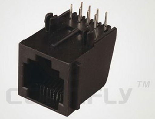 Разъем "гнездо" 8P8C RJ-45 (8 конт., позол.), с боковыми упорами под панель, прямой угол на плату, черный изолятор (DS1134-02-S80BPS)  (аналог TJ2-8P8C* с упорами)