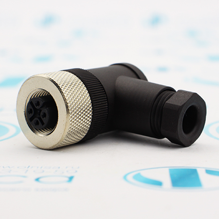 E11509 (SDOAH040VASFKPG) Разъём с клеммами IFM, разъём угловой M12, 4-pin "мама", позолоченные контакты, материал гайки - цинк с никелевым покрытием, IP67.