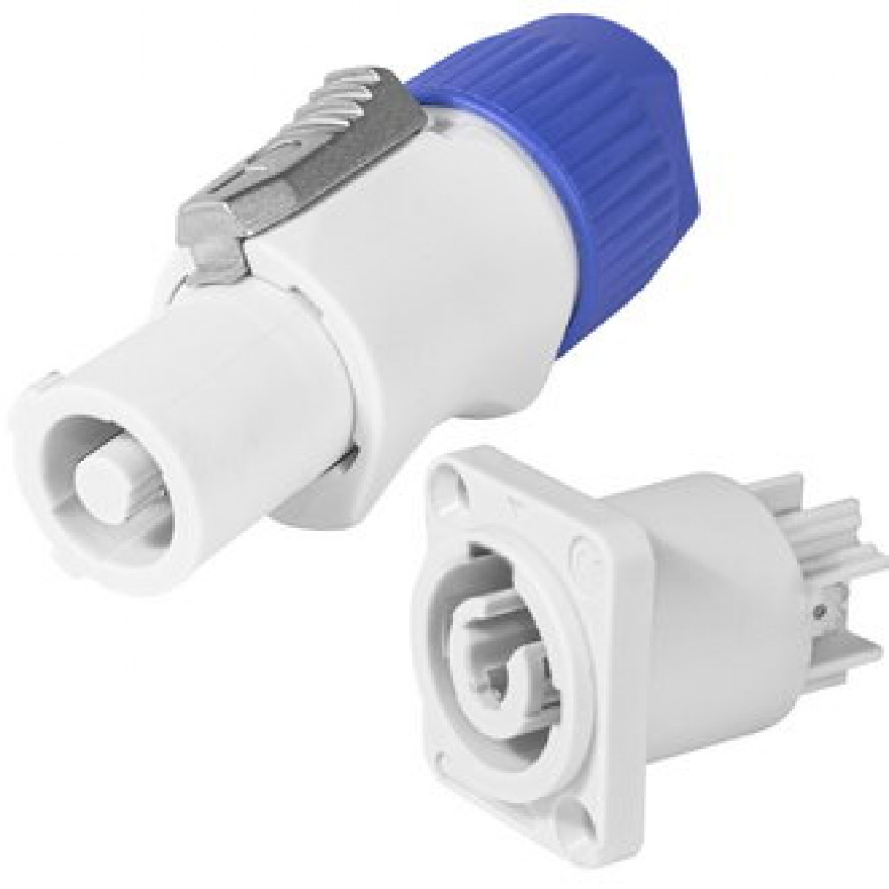 Разъем питания XLR с фиксатором RUICHI NAC3FCB-R, 3 контакта, 20 А, 250 В, 3 мОм, на панель, крепление корпуса винтовое, корпус PA66, синий/серый