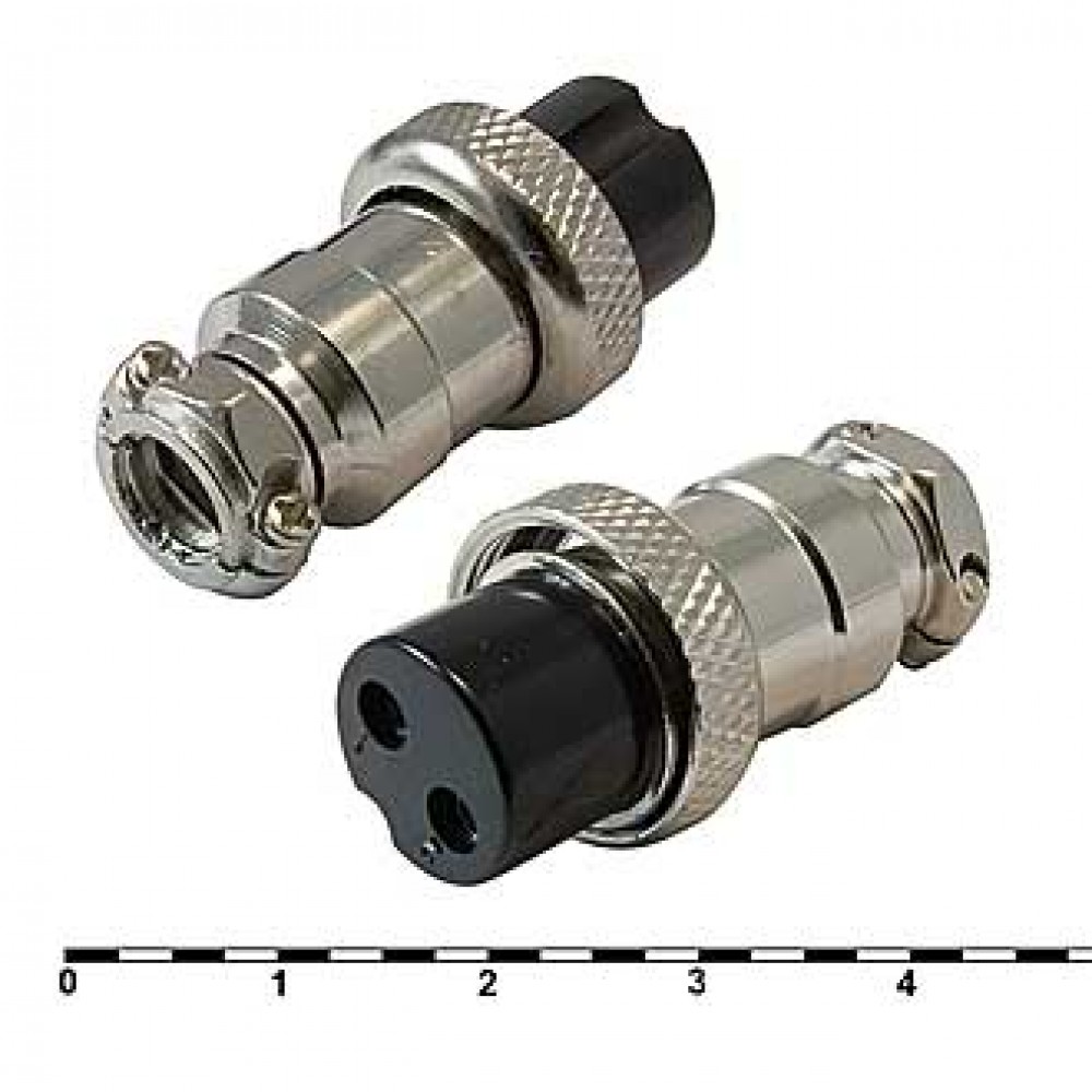 Разъём цилиндрический малогабаритный RUICHI GX16M-2A, 2 контакта