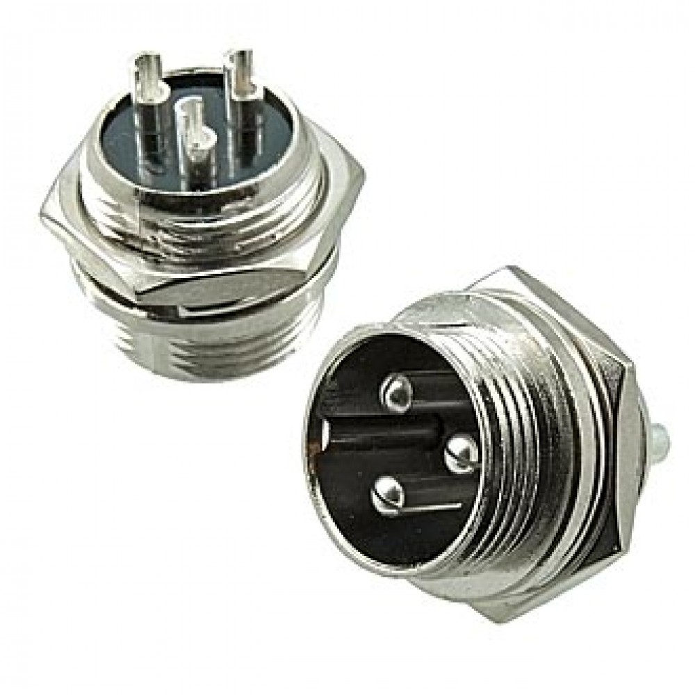 Разъём цилиндрический малогабаритный RUICHI GX16M-3B, 3 контакта