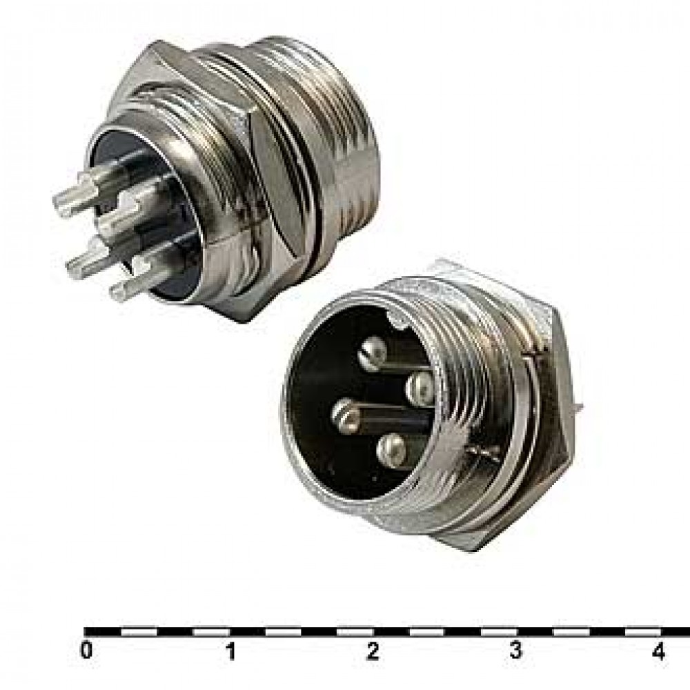 Разъём цилиндрический малогабаритный RUICHI GX16M-4B, 4 контакта