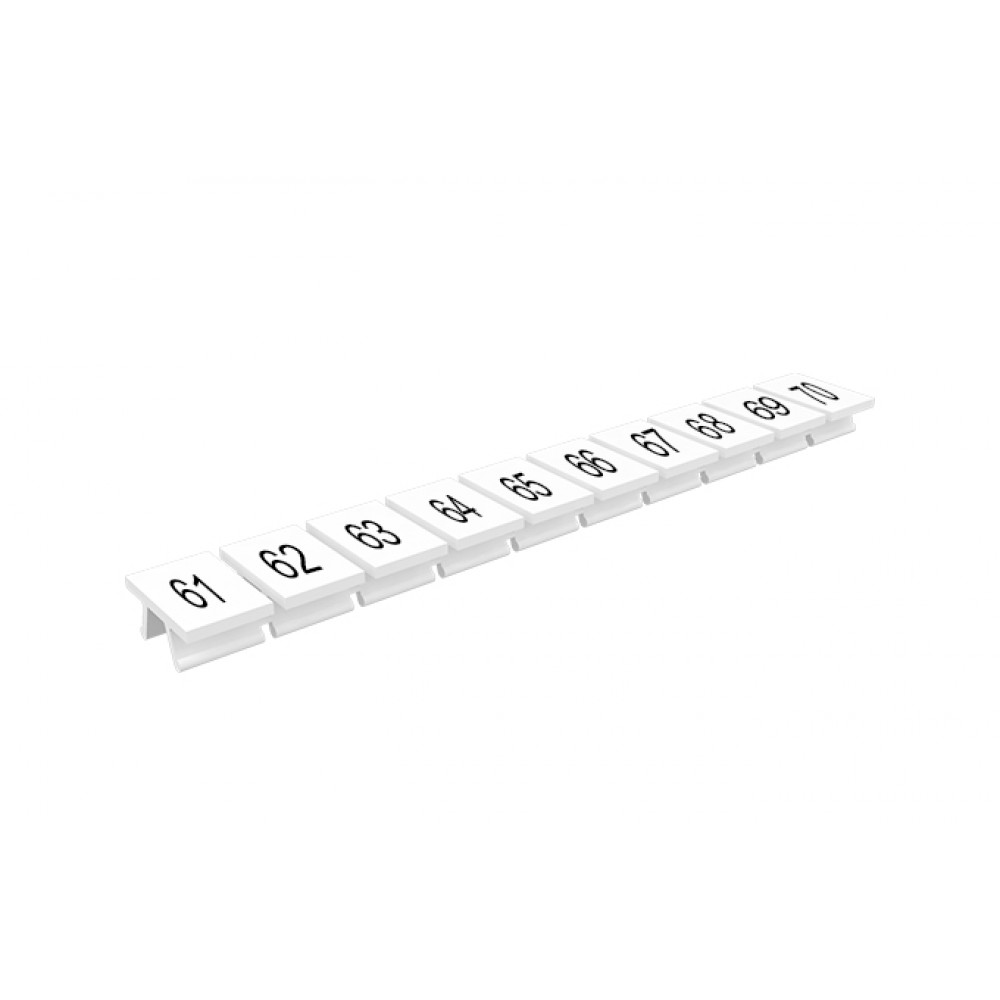 Маркировочные шильдики для клемм TU/TP/TC, сечением 6 мм кв., 10 шильдиков, нанесенные символы: 61…70, с горизонтальным, расположением, цвет белый