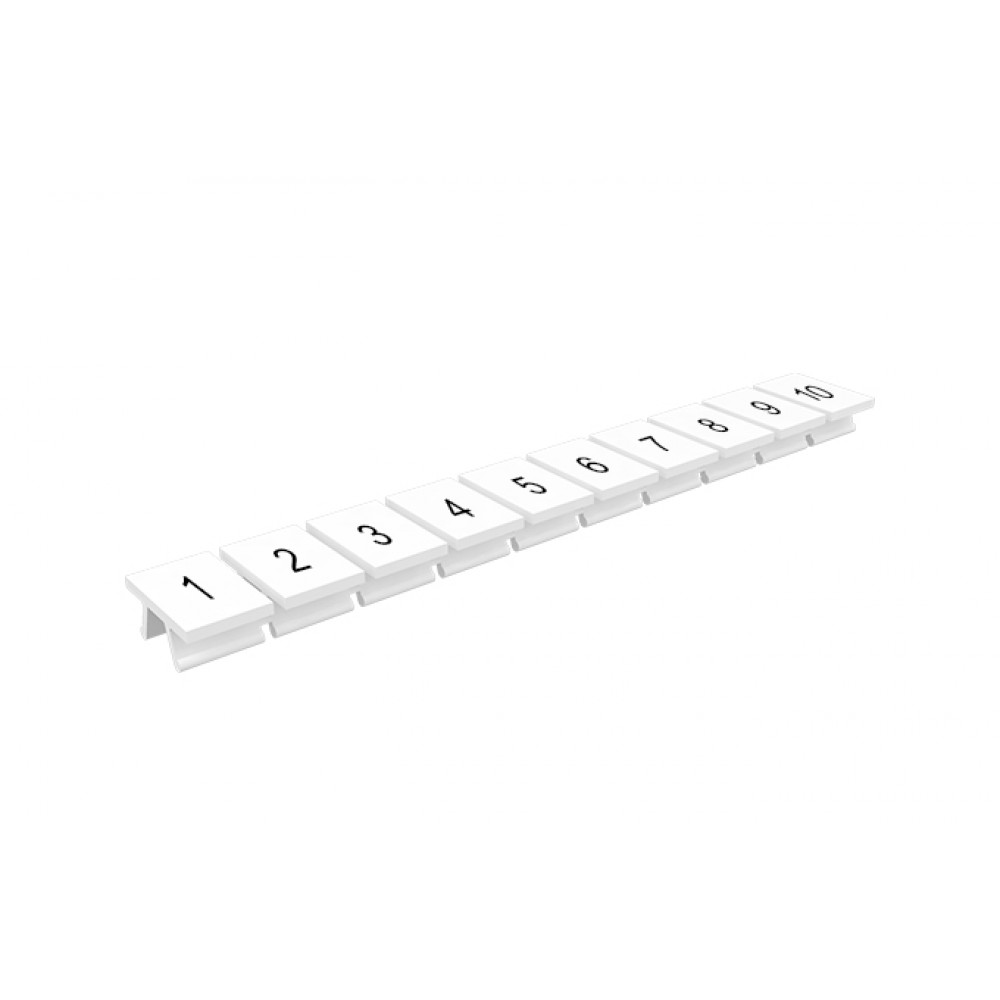 Маркировочные шильдики, для клемм сечением 10 мм.кв., боковая, 10 шильдиков, нанесенные символы: 1...10, с горизонтальным расположением, размер шильдика: 10 x 10,6 мм, цвет: белый