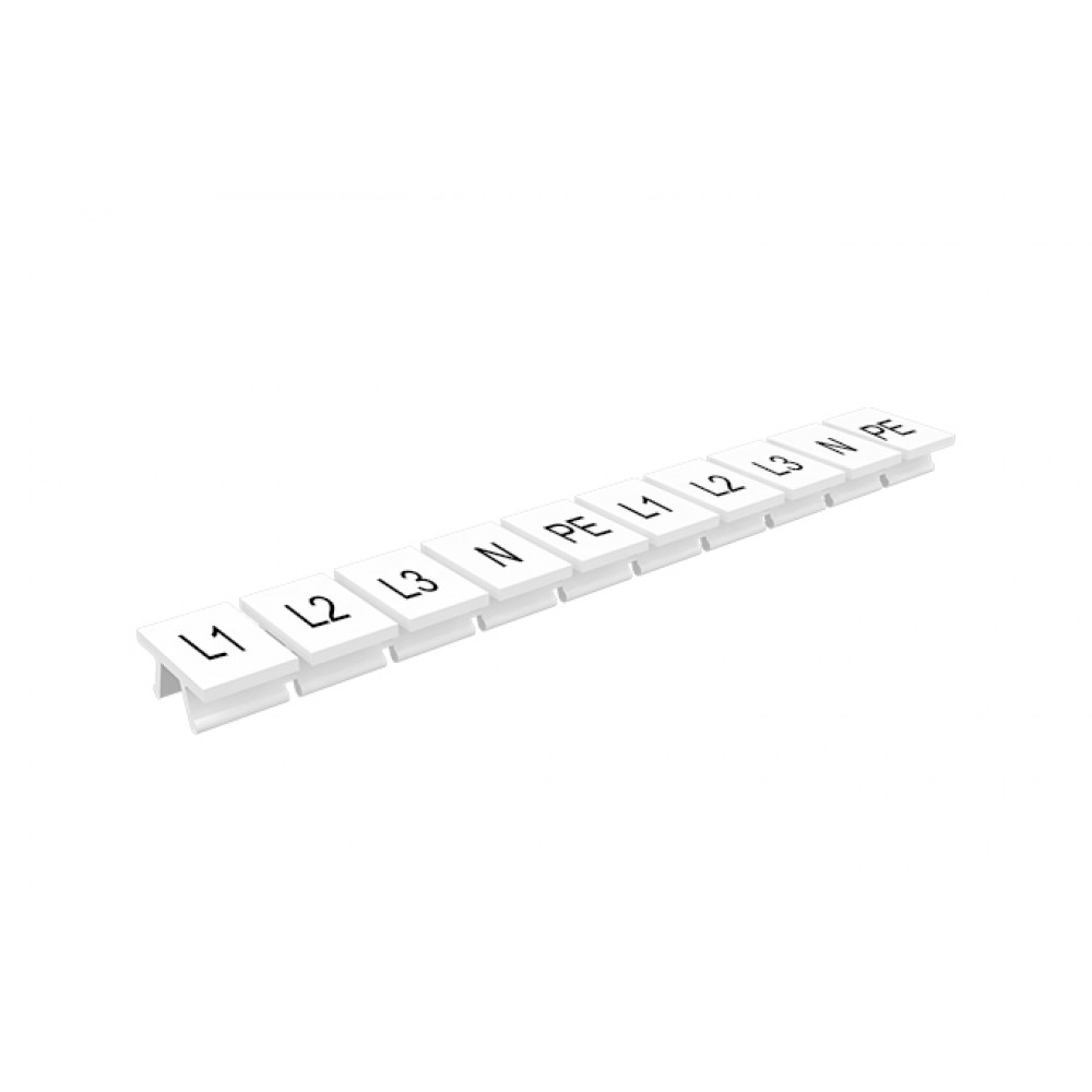Маркировочные шильдики для клемм TU/TP/TC, сечением 10 мм кв., 10 шильдиков, нанесенные символы: L1.L2.L3.N.PE, с горизонтальным, расположением, цвет белый