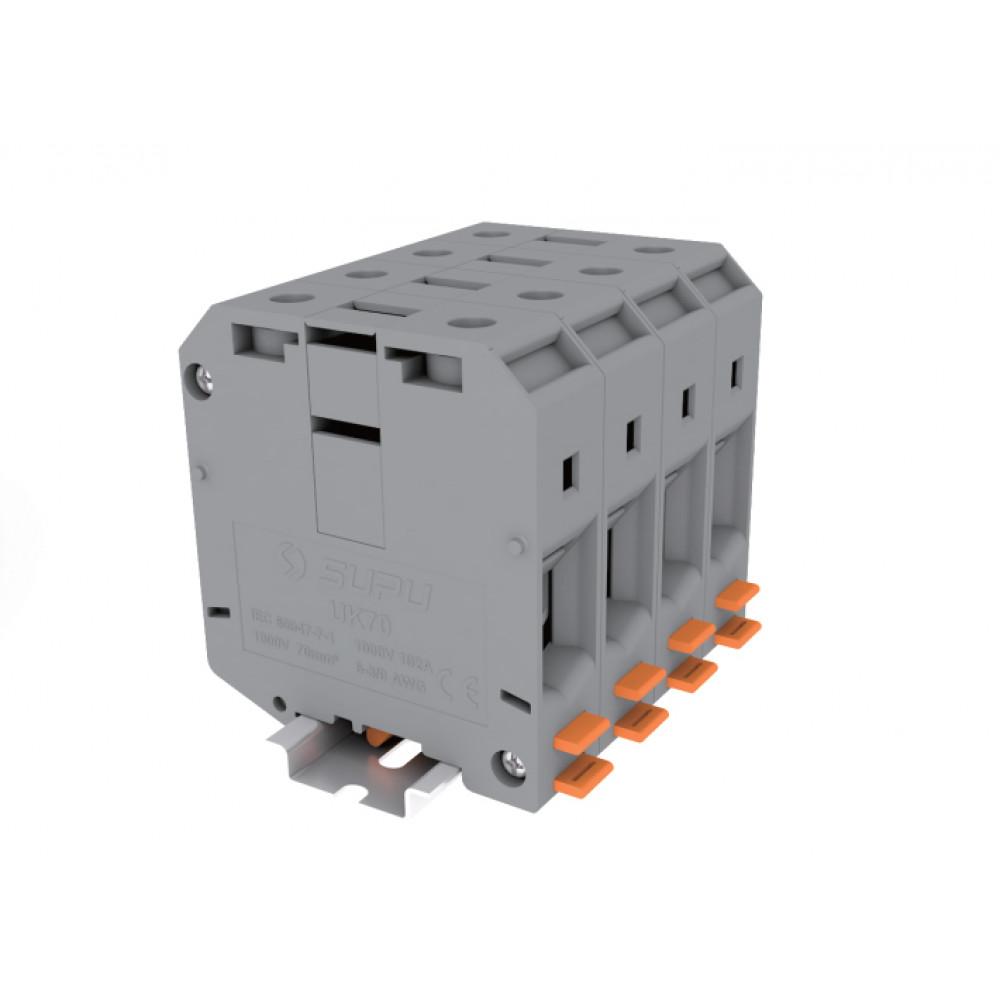 Проходная клемма, UK70, тип фиксации провода: винтовой, номинальное сечение: 12 мм кв., 192A, 1000V, ширина: 20,4 мм, цвет: серый, тип монтажа: DIN 35