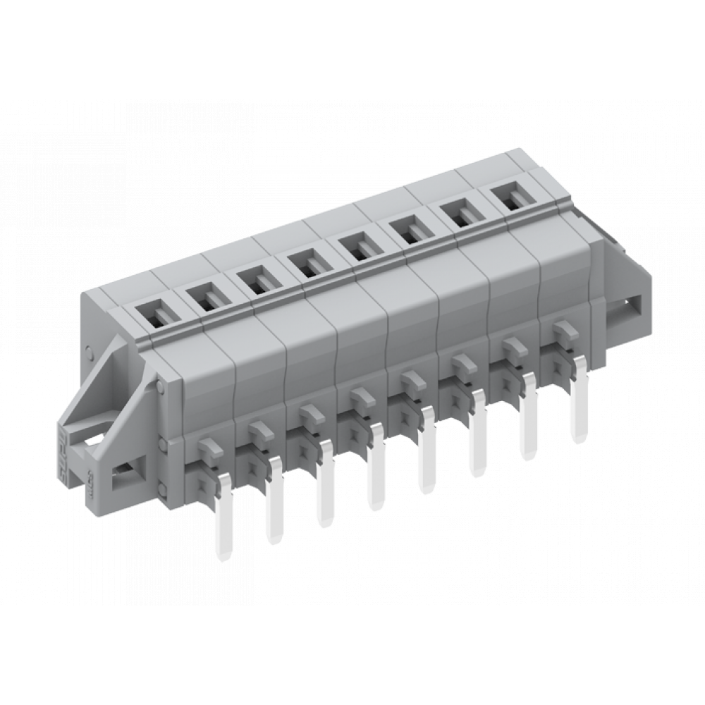Клемма, горизонтальный, подвод кабеля, на плату, шаг: 5.0 мм, 7 полюсов, фиксация провода пружинная, исполнение: с монтажными фланцами, 320V, 12A, цвет: серый