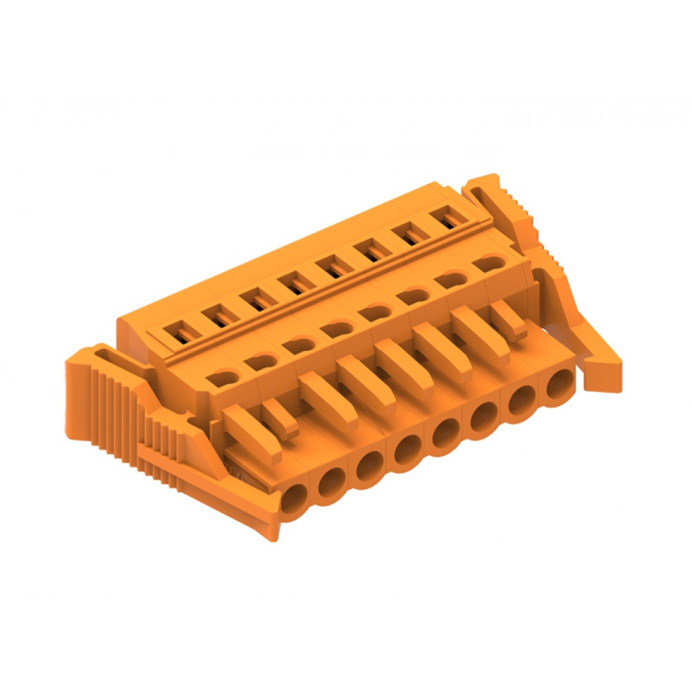 Розеточный разъем, прямой, на кабель, шаг: 5.08 мм, 5 полюсов, фиксация провода пружинная, исполнение: с пластиковыми защелками, 320V, 12A, цвет: оранжевый