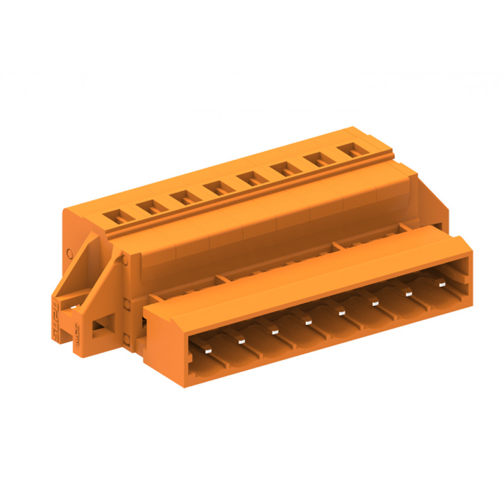 Вилочный разъем, прямой, на кабель, шаг: 5.08 мм, 8 полюсов, фиксация провода пружинная, исполнение: с монтажными фланцами, 320V, 12A, цвет: оранжевый