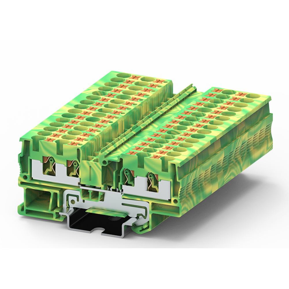 Заземляющая клемма, 4 точки подключения, push-in, номинальное сечение: 4 мм кв., ширина: 6,2 мм, цвет: желто-зеленый, тип монтажа: DIN 35