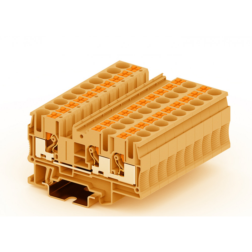 Проходная клемма, 3 точки подключения, тип фиксации провода: push-in, номинальное сечение: 6 мм кв., 41A, 1000V, ширина: 8,2 мм, цвет: оранжевый, тип монтажа: DIN 35
