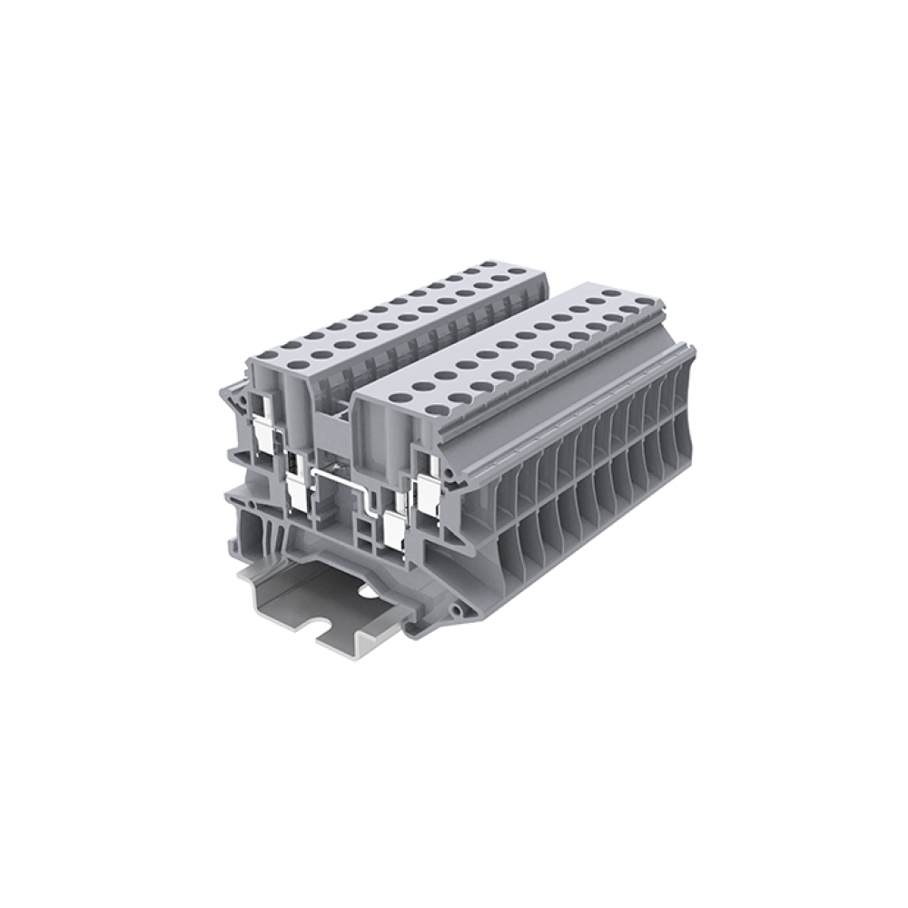 Проходная клемма, 4 точки подключения, тип фиксации провода: винтовой, номинальное сечение: 4 мм кв., 32A, 1000V, ширина: 6,2 мм, цвет: серый, тип монтажа: DIN 35