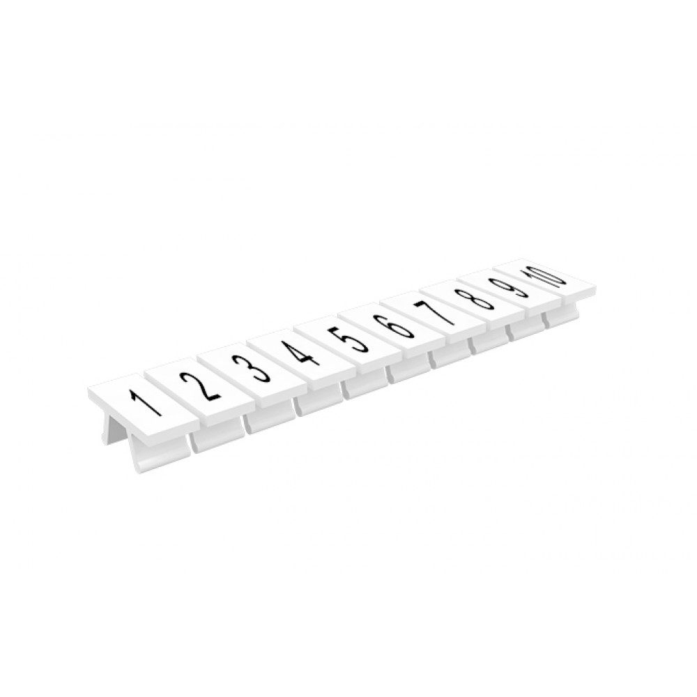 Маркировочные шильдики для клемм TU/TP/TC, сечением 2,5 мм кв., 10 шильдиков, нанесенные символы: 1…10, с горизонтальным, расположением, цвет белый
