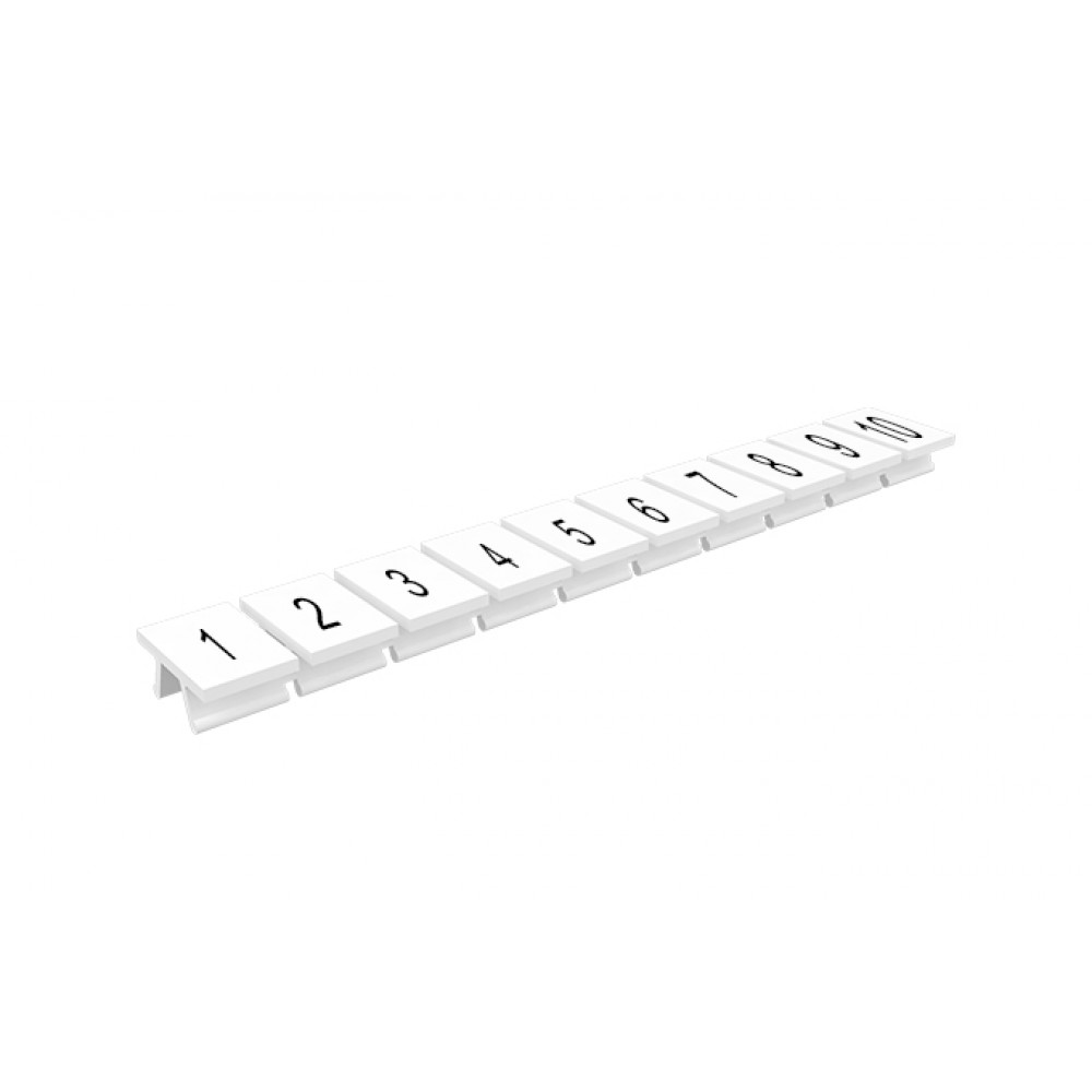 Маркировочные шильдики для клемм TU/TP/TC, сечением 6 мм кв., 10 шильдиков, нанесенные символы: 1…10, с горизонтальным, расположением, цвет белый