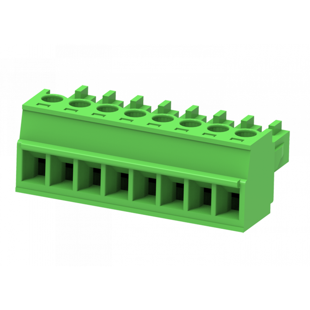 Розеточный разъем, прямой, на кабель, шаг: 3.81 мм, 10 полюсов, фиксация провода винтовая, исполнение: стандартное, 160V, 8A, цвет: зеленый
