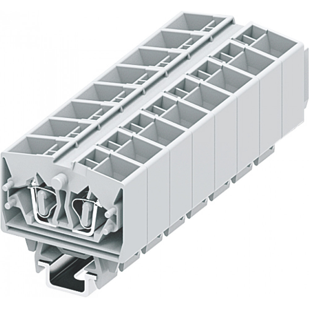 Проходная клемма, MINI, верхний подвод кабеля, 4 точки подключения, тип фиксации провода: пружинный, номинальное сечение: 2,5 мм кв., 24A, 800V, ширина: 10 мм, цвет: светло-серый, тип монтажа: DIN15