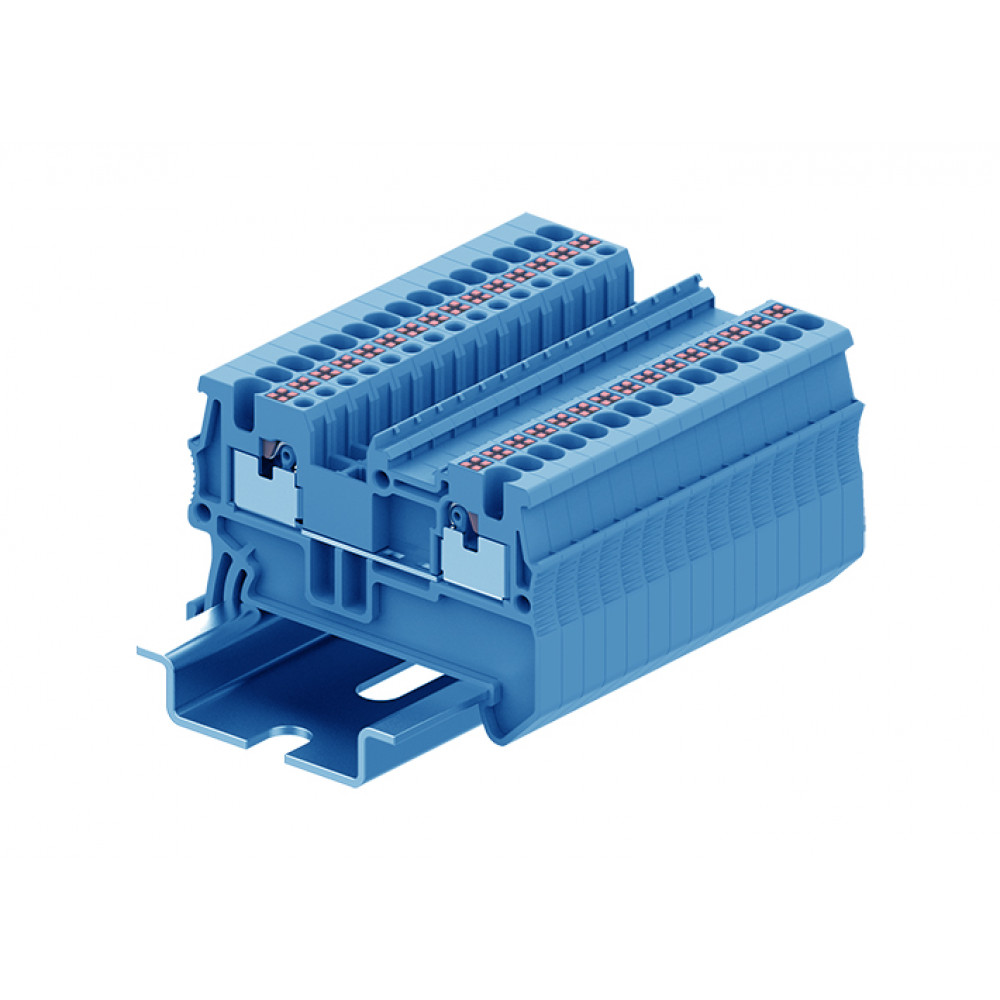 Проходная клемма, тип фиксации провода: Push-in, номинальное сечение: 1.5 мм кв., 17,5A, 500V, ширина: 3,5 мм, цвет: синий, тип монтажа: DIN35